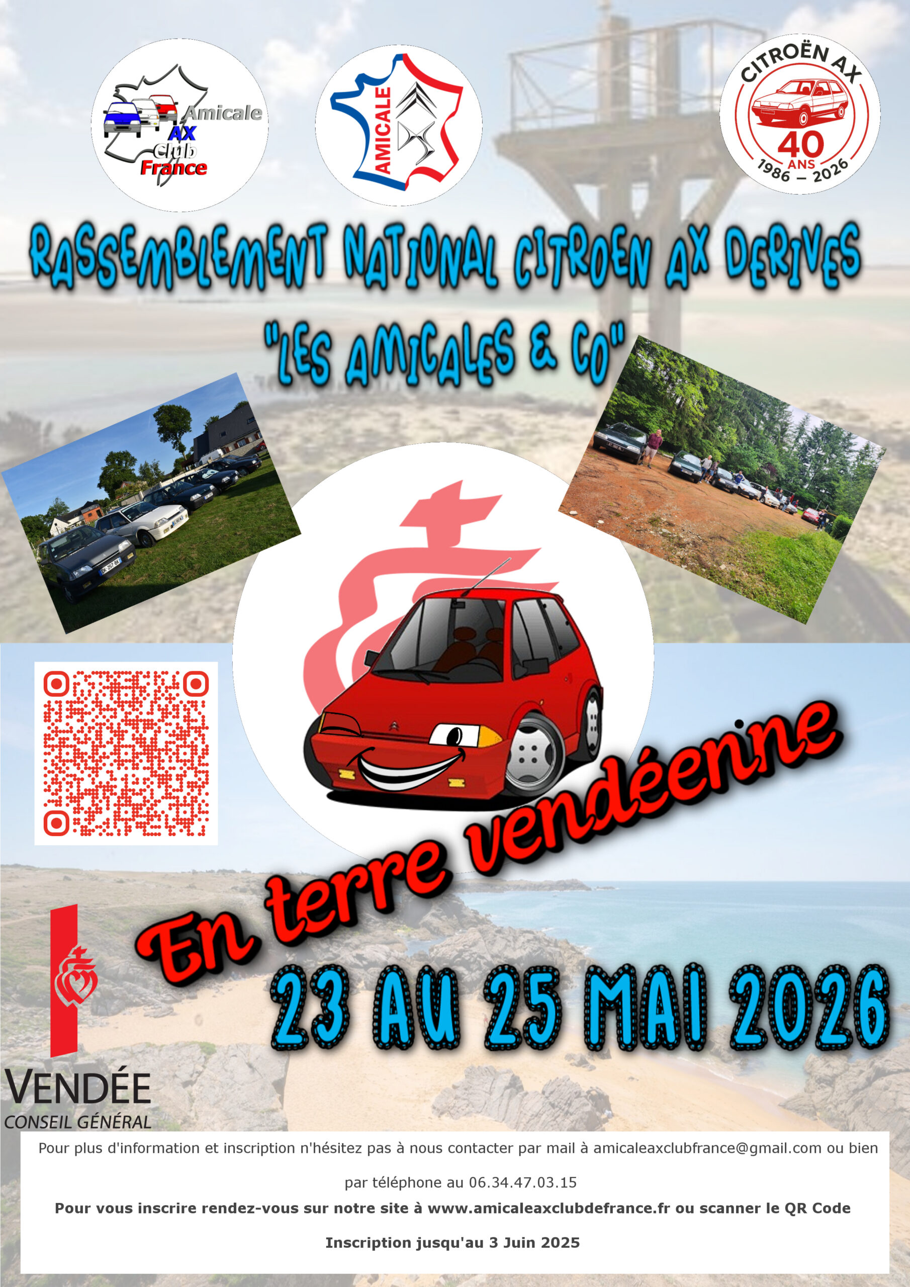 L’association organise comme chaque année la Rencontre Nationale Citroën AX & Dérivés qui se tiendra du 22 au 24 Mai 2026 en Vendée (85).